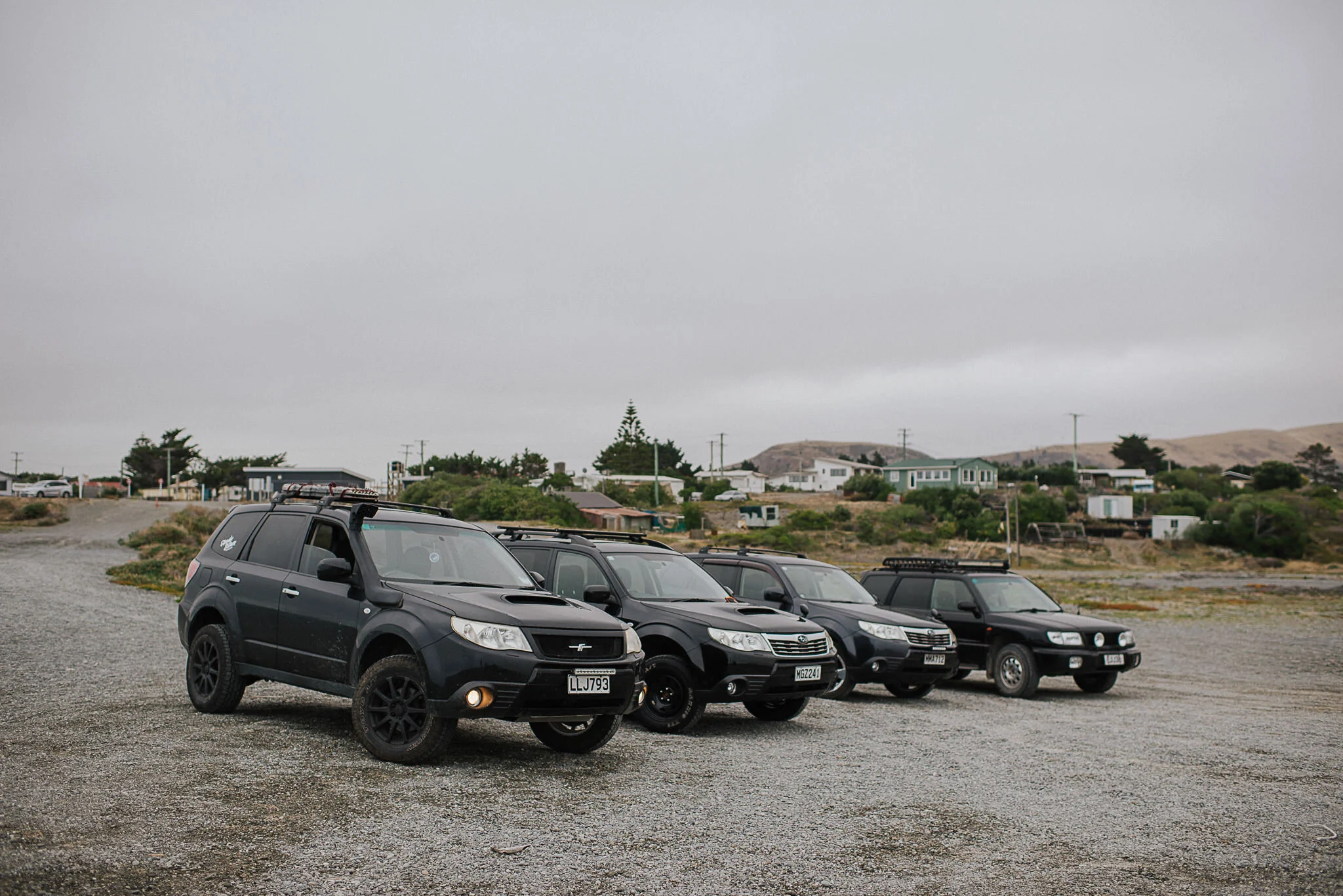 On a recent visit to Christchurch, I managed to line up a morning trip with a few of the boys from Subarus Offroad New Zealand. The dress code for this event being black or gunmetal grey. Joining me was Tony in his SH Forester XT, Luke in his SH Forester, and Joe in his 99 SF Forester. We met up and headed off to the first destination of Birdlings Flat. This south facing beach can be a very exciting to witness the big southern swells rolling in, but on our trip it was beautifully calm.