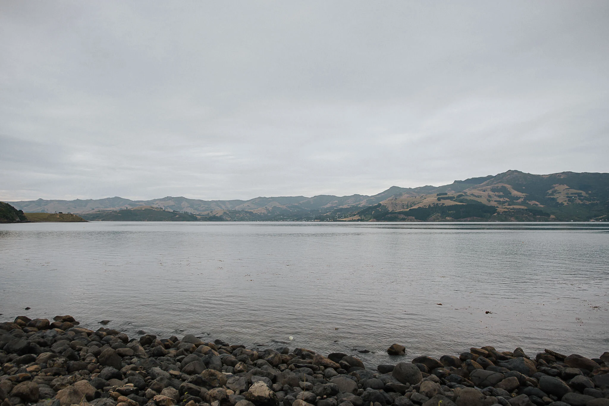 Getting across the beach has its challenges, being a pebble beach a very soft, it dent take much to become stuck. After dropping down to about 20psi we hit it, with only one of us getting into a mild struggle. The upwards into the clouds along the Bossu Road. This is a part that apparently offers some of the best views, so we’ve marked this place to return to on a clear day. Following the winding gravel road along the tops of Banks Peninsula, we then dropped down int Akaroa harbour and the skies cleared.