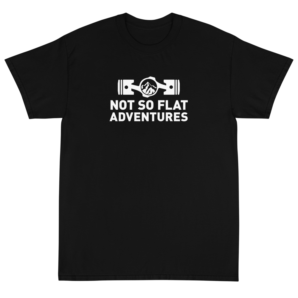 The Not So Flat Adventures boxer logo tee. This t-shirt makes for a great staple piece in any wardrobe! It has a classic fit with thick cotton fabric.